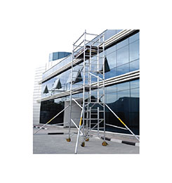 It is most popular mobile scaffolding tower, available in 1.39M wide frames.This system has numerous applications for both interior and exterior use. The maximum working height for interior work is 14M and exterior work is 10M. Equal length braces, stabilizers, platform, wheel legs and toe board can be interchange between single width mobile scaffolding tower. It is also equipped with construction manual and labels. The maximum load per platform is 250kgs and for the entire tower is 750kgs including tower self-weight.